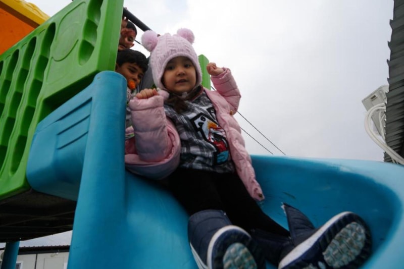 Asrın felaketinde mağdur olan çocuklar ise her şeyden habersiz konteynerlerin arasında koşuşturup, inşa edilen parklarda oyun oynamaya devam ediyor.