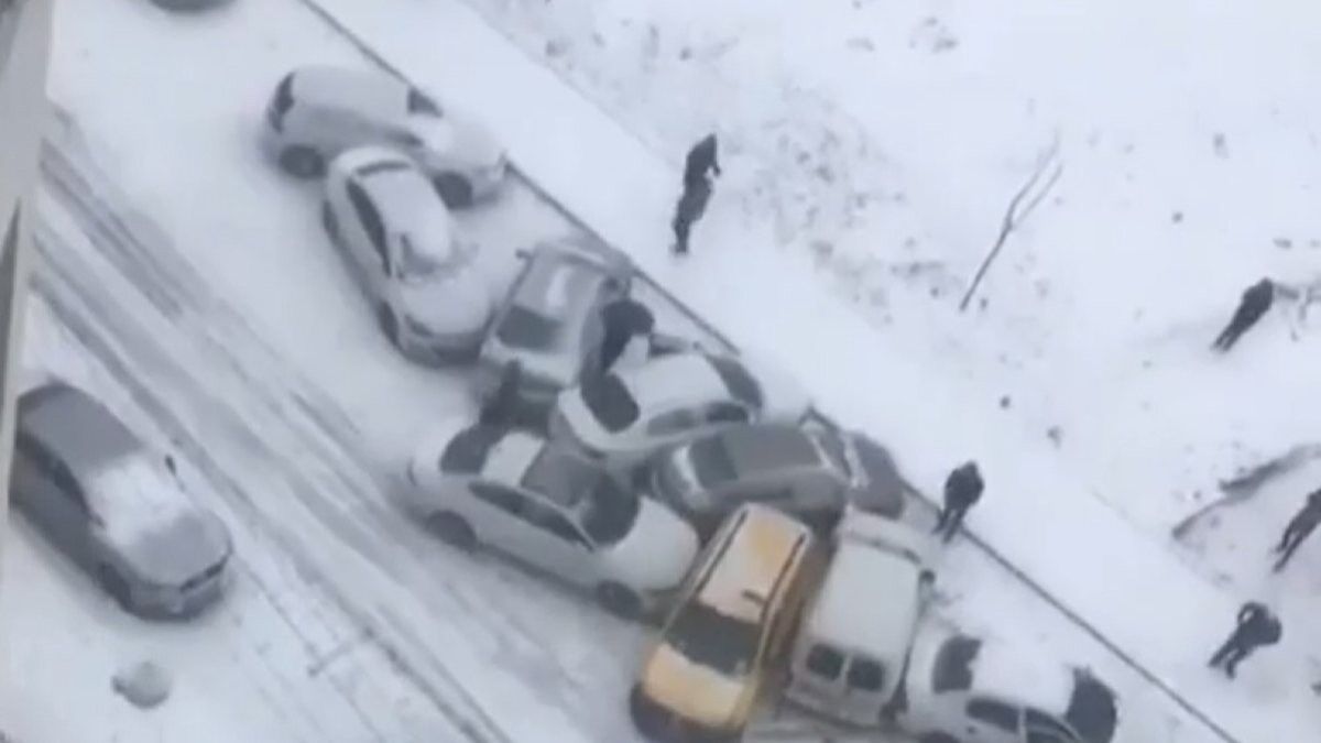 Buzlanmadan dolayı direksiyon hakimiyetini yitiren sürücüler, art arda birbirine çarptı. Buzlanan yolda 10 aracın çarpıştığı anlar, cep telefonu kamerasıyla kaydedildi.
