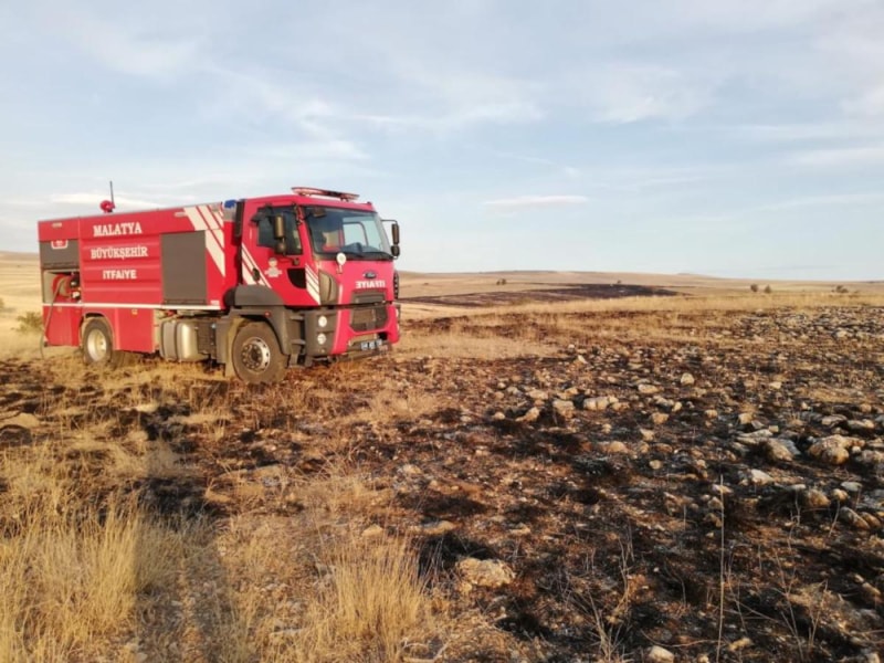 Malatya'nın Darende ilçesine bağlı Yeniköy Mahallesi Topraktepe mevkisinde bölgede meralık alanda henüz bilenmeyen bir nedenle anız yangını çıktı.