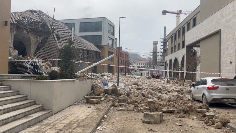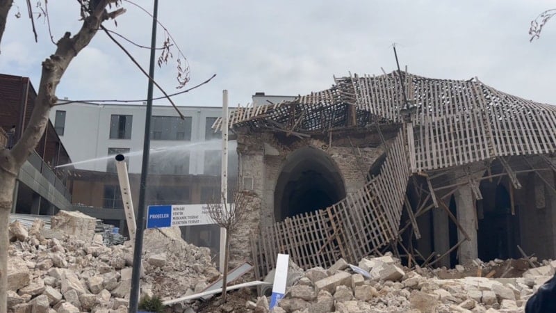 Malatya’nın Battalgazi ilçesi Yenihamam Mahallesi’nde saat 11.00 sıralarında restorasyonu devam eden tarihi Çınarlı Camisi inşaatında bilinmeyen bir nedenle göçük meydana geldi.