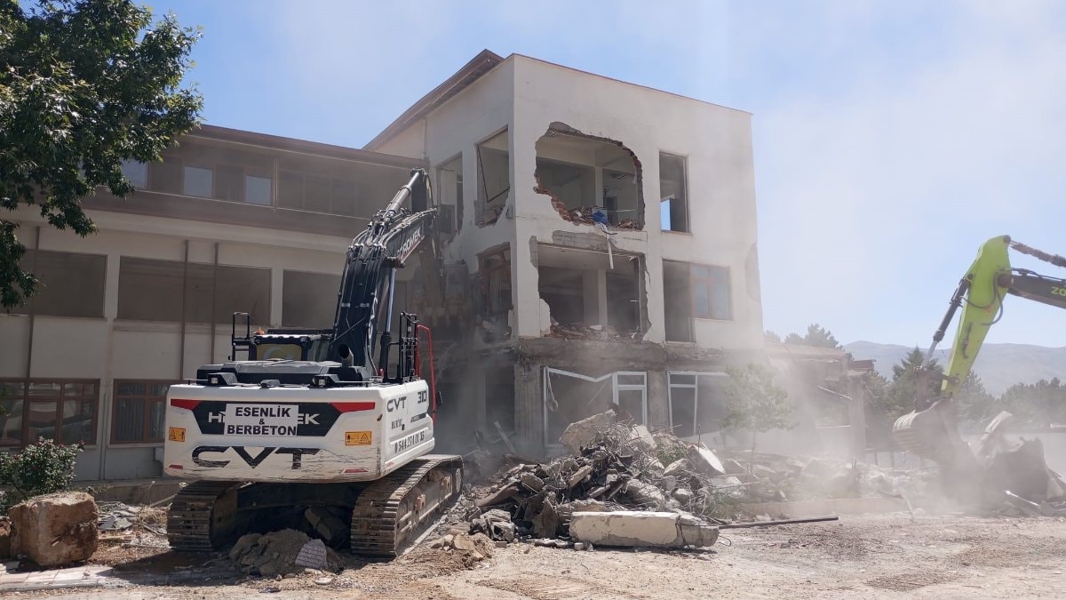 Büyük yıkımın yaşandığı Doğanşehir ilçesinde de ağır hasarlı yapıların yıkımlarına başlanırken, ilçede 37 yıldır belediye hizmet binası olarak kullanılan ve depremlerde hasar alan üç katlı binanın da yıkım işlemleri kontrollü bir şekilde gerçekleştirildi.
