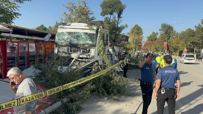İnönü Caddesi’nde freni boşaldığı öne sürülen kamyon, yol kenarındaki 7 konteyner iş yerine çarptı.
