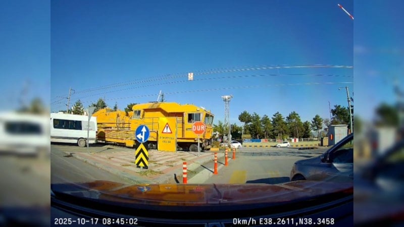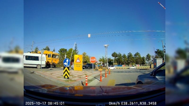 Hemzemin geçitte bariyerlerin erken açılması, öğrenci servis minibüsünün trenden saniyeler önce karşıya geçmesine yol açtı. O anlar bir aracın kamerasına yansıdı.