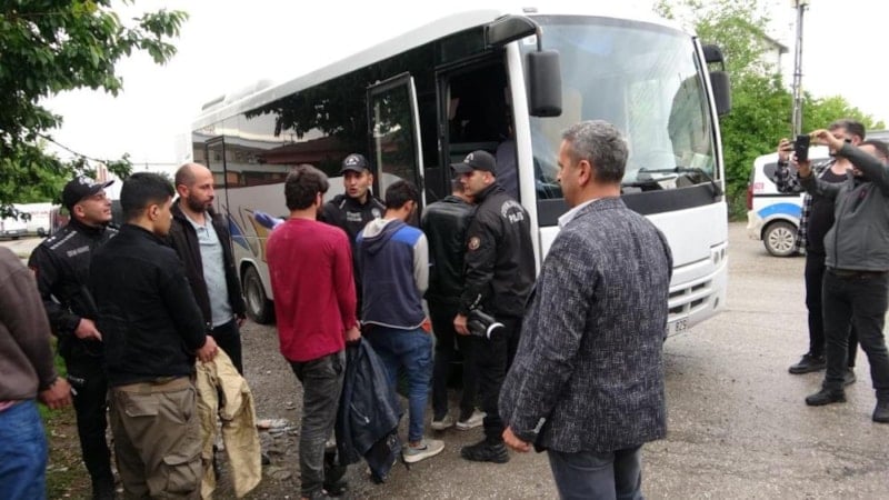 Düzensiz göçmenler ile organizatörler, yapılan üst aramalarının ardından polis merkezine götürüldü.