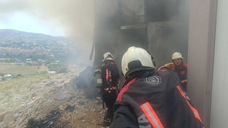 Malatya'nın Yeşilyurt ilçesine bulunan bir şantiyede çalışan işçilerin kaldığı konteynerlerde bilinmeyen bir nedenle yangın çıktı.