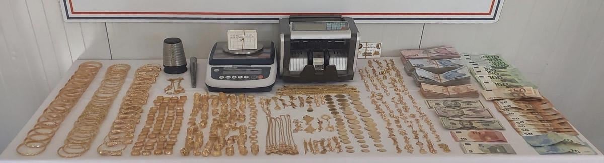 Yapılan çalışmalarda şahsın ikamet ettiği konteyner ve eklentilerinde arama yapan ekipler yüklü miktarda altın ele geçirildi.