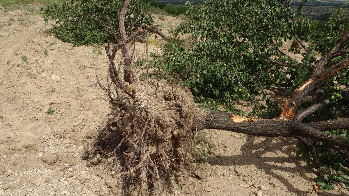 Malatya'da kayısı ağaçlarını kökünden sökülmüş buldu VİDEO