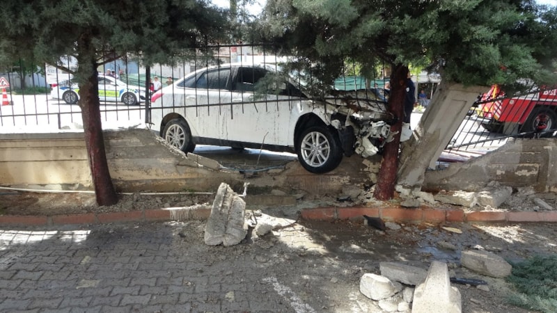 Çarpmanın etkisiyle savrulan araç daha sonra site duvarına çarparak alev aldı.