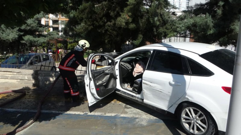 KAZA YAPAN ARAÇTA YANGIN ÇIKTI