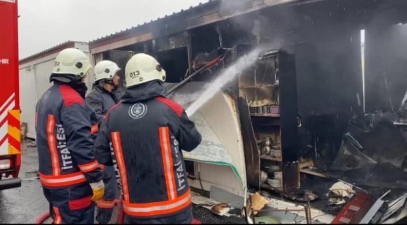 Yaralananın olmadığı yangında konteyner kullanılamaz hale geldi.