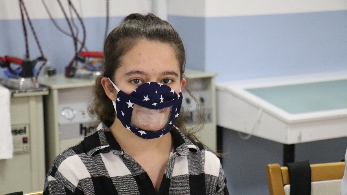 Malatya’nın Battalgazi ilçesindeki Hafize Özal Mesleki ve Teknik Anadolu Lisesi Moda Tasarım bölümü öğrencileri, işitme engelli vatandaşlar için özel maske üretti.