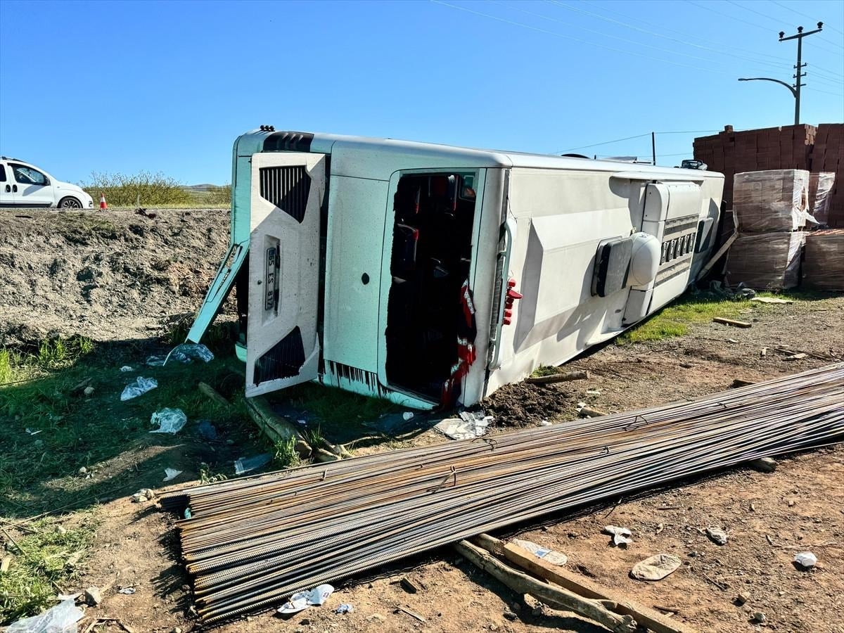 Kazada otomobildeki 3 kişi ile otobüsteki 19 kişi yaralandı.