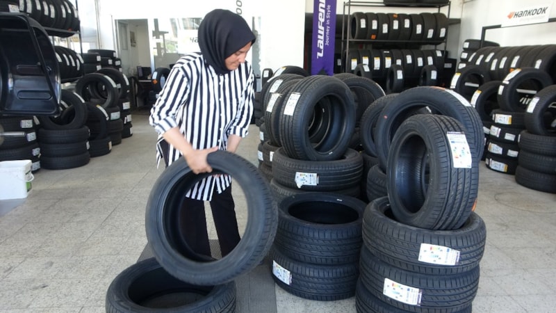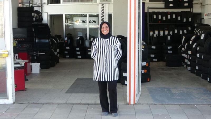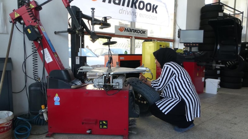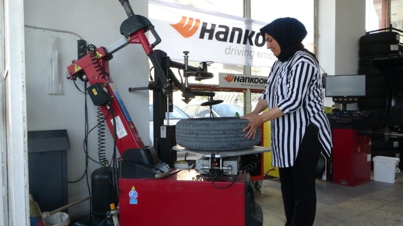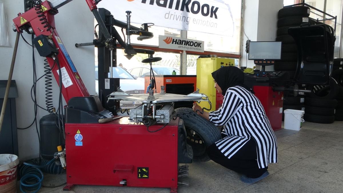 Malatya'da yaşayan 42 yaşındaki Serap Aksüt, 24 yıl önce geçimini sağlamak için lastik tamirciliği mesleğine adım attı.