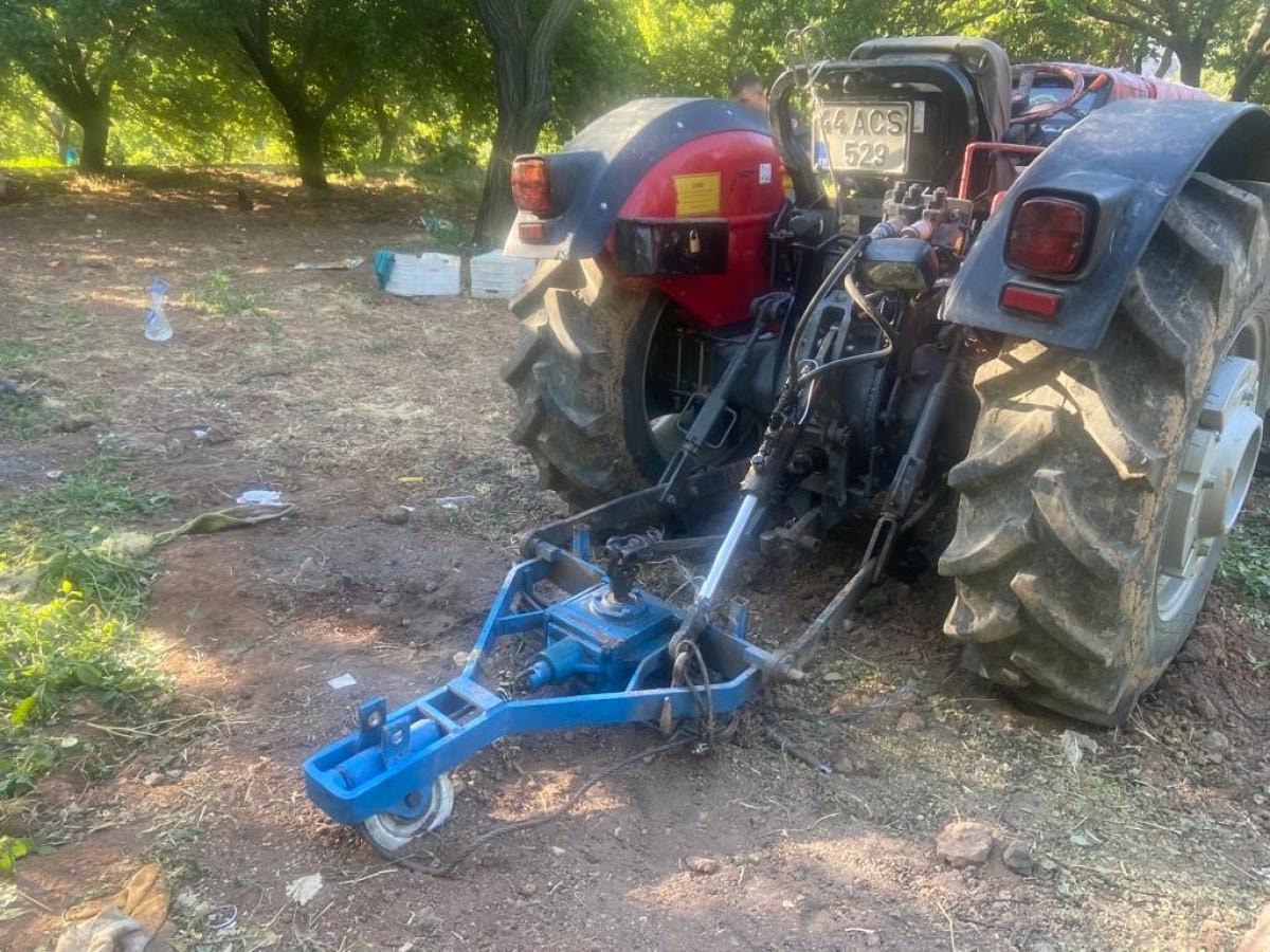 İddiaya göre, Hasan Basri Bulut (62) kendisine ait kayısı bahçesinde traktörün arkasına taktığı kayısı silkeleme aparatıyla hasada başladı.