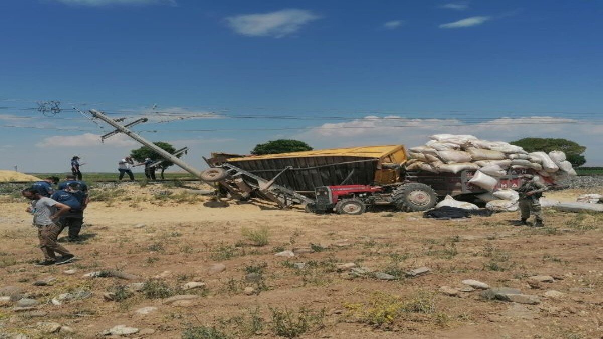Kazadan traktörün sürücüsü yara almadan kurtulurken, savrulan römork ise arkadan gelmekte olan başka bir traktörün üstüne düştü.