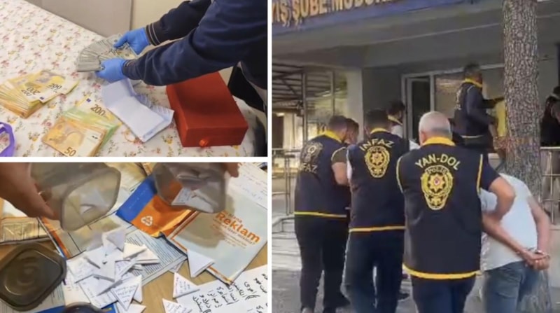 Zanlıların ikametlerinde yapılan aramalarda, sözde büyü yapımında kullanıldığı değerlendirilen Arapça ve eski yazılarla yazılmış ceylan ve yılan derisi, tahta kaşık, bez parçaları, atlet, at nalı, sabun gibi materyaller ile birlikte 100 bin dolar nakit para ele geçirildi.