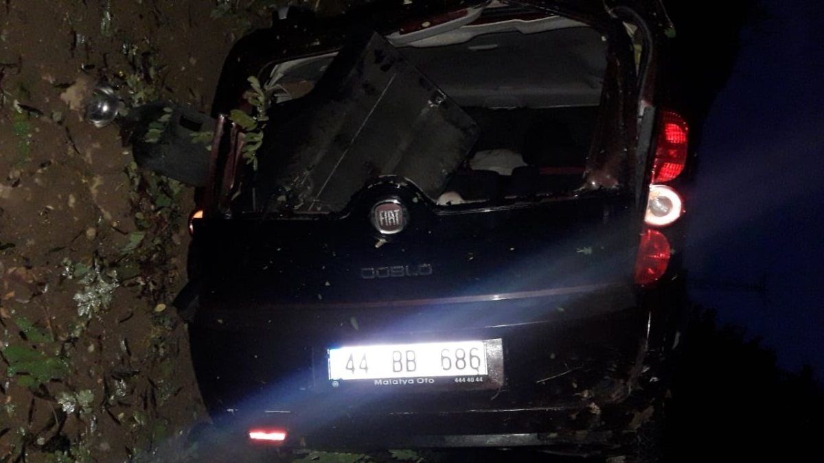 Malatya-Kayseri karayolu Akçadağ Aydınlar Mahallesi mevkiinde, Kayseri istikametine seyir halinde olan M.A. (22) idaresindeki 44 BB 686 plaka hafif ticari araç, yağışlı havanın etkisiyle kayganlaşan yolda kontrolden çıkarak takla atıp yan yattı.