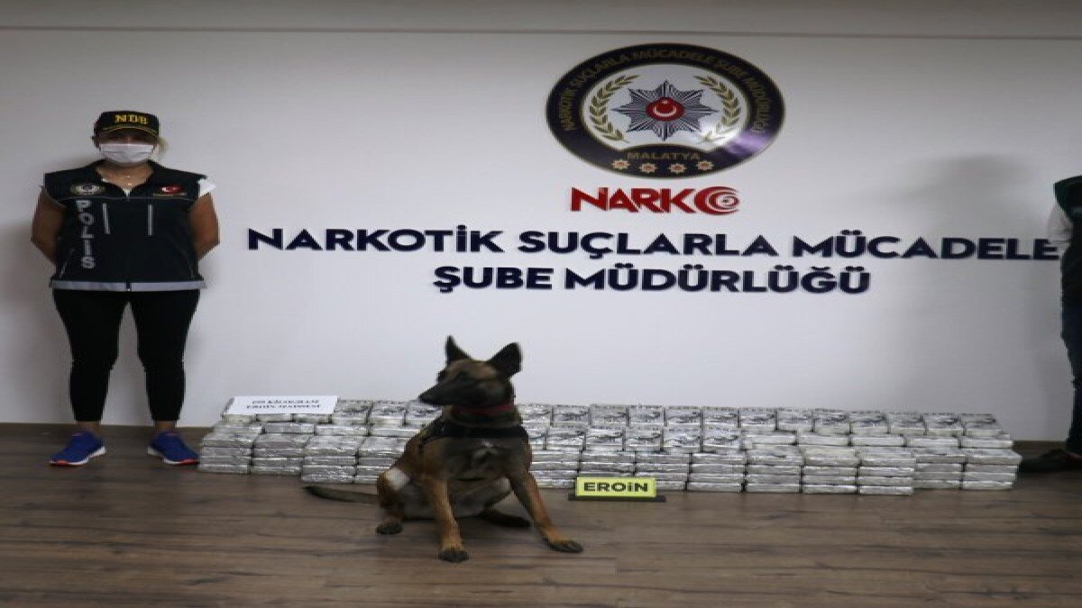 Araçta bulunan 2 şüpheli gözaltına alınırken, Malatya tarihinde ilk kez bu kadar büyük oranda eroin maddesinin ele geçirildiği belirtildi.