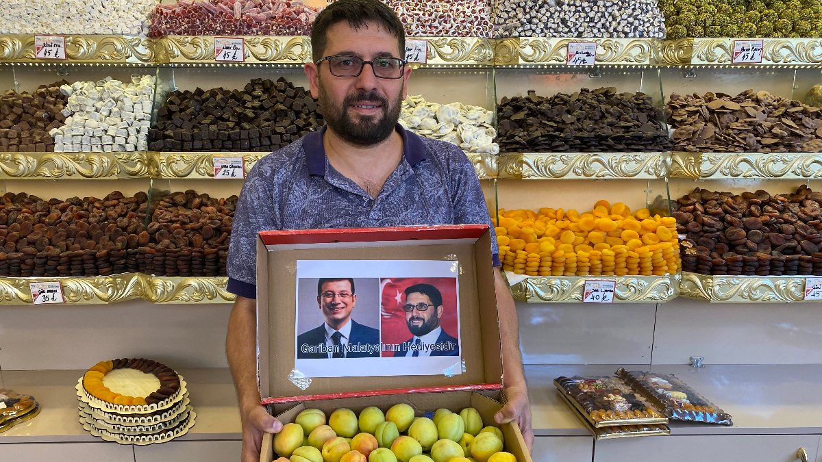 Malatyalı esnaf İrfan Yılmaz, İmamoğlu'na tepki olarak hediyelik kayısı gönderdi.