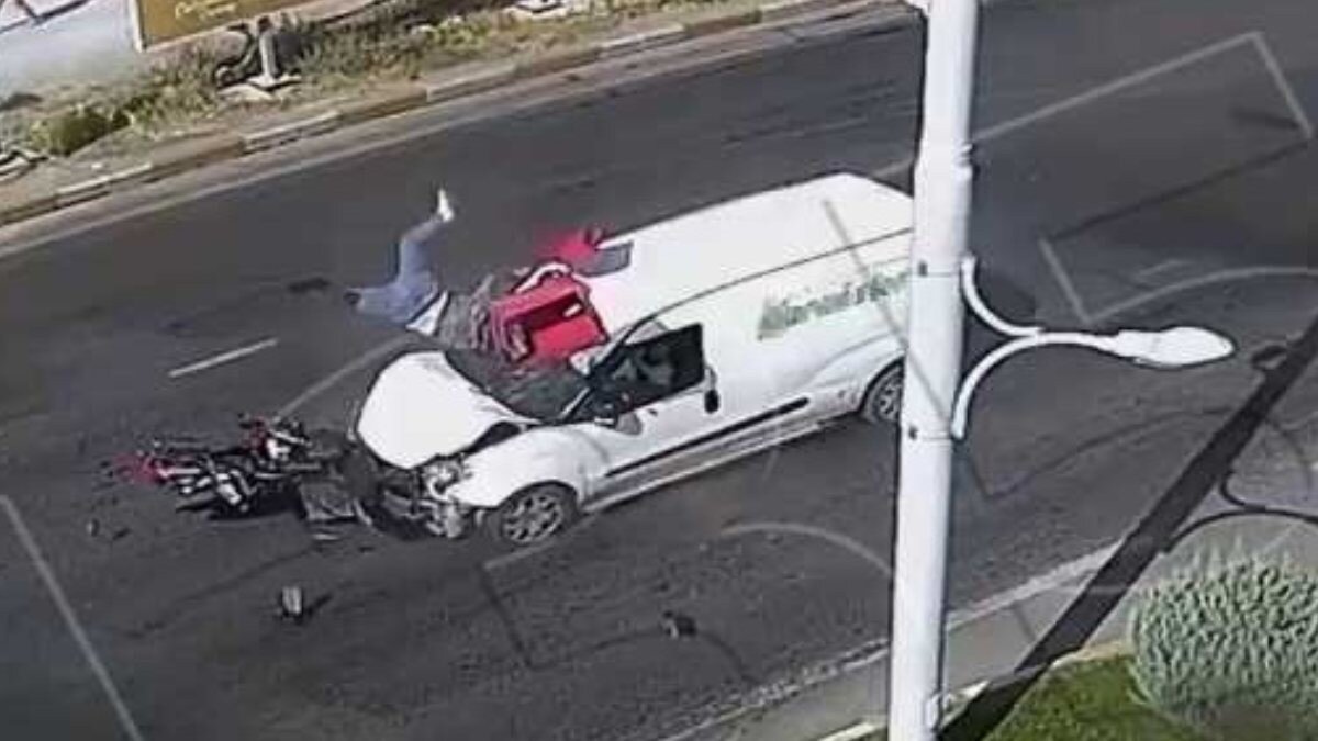 Adeta havaya savrulan motosiklet sürücüsünün dehşete düşüren görüntüleri, güvenlik kameralarına yansıdı.