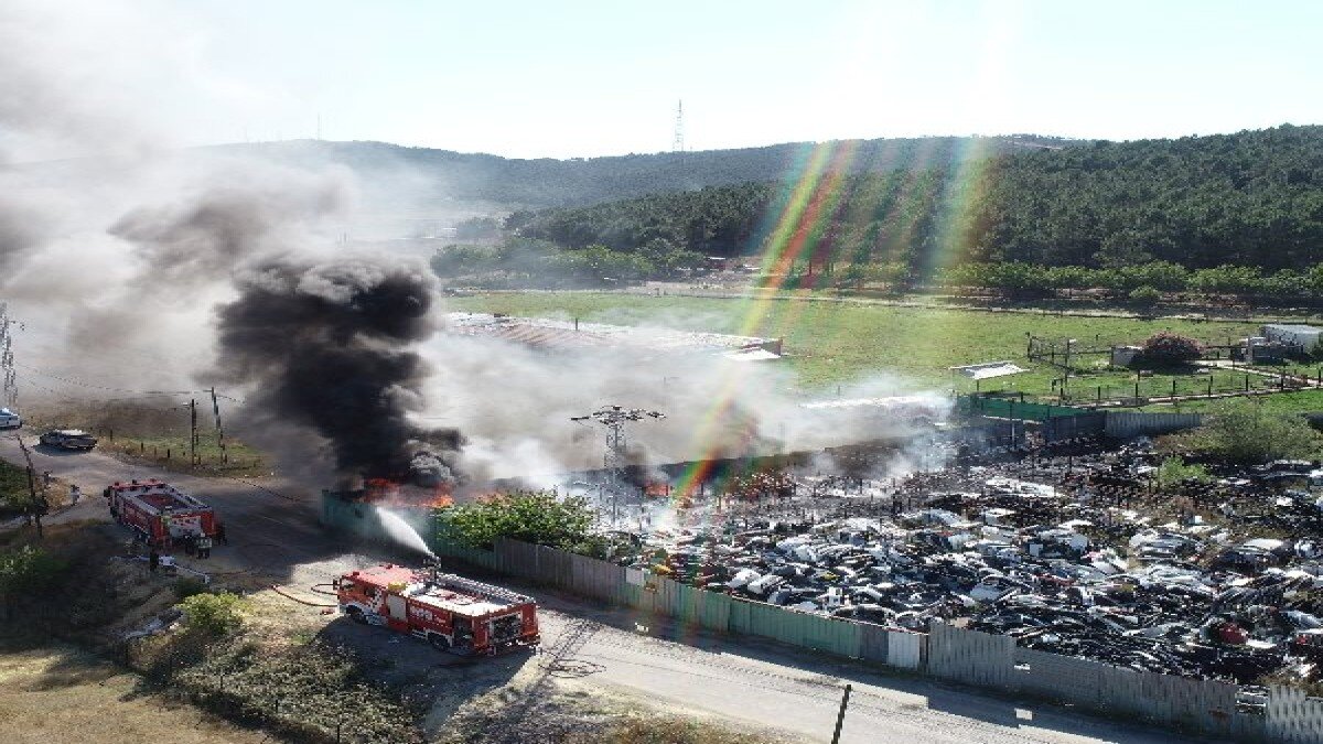 İstanbul'un Maltepe ilçesine bağlı Büyükbakkalköy Mahallesi'nde, açık alanda bulunan hurda araç parçalarının olduğu bir depoda yangın çıktı.