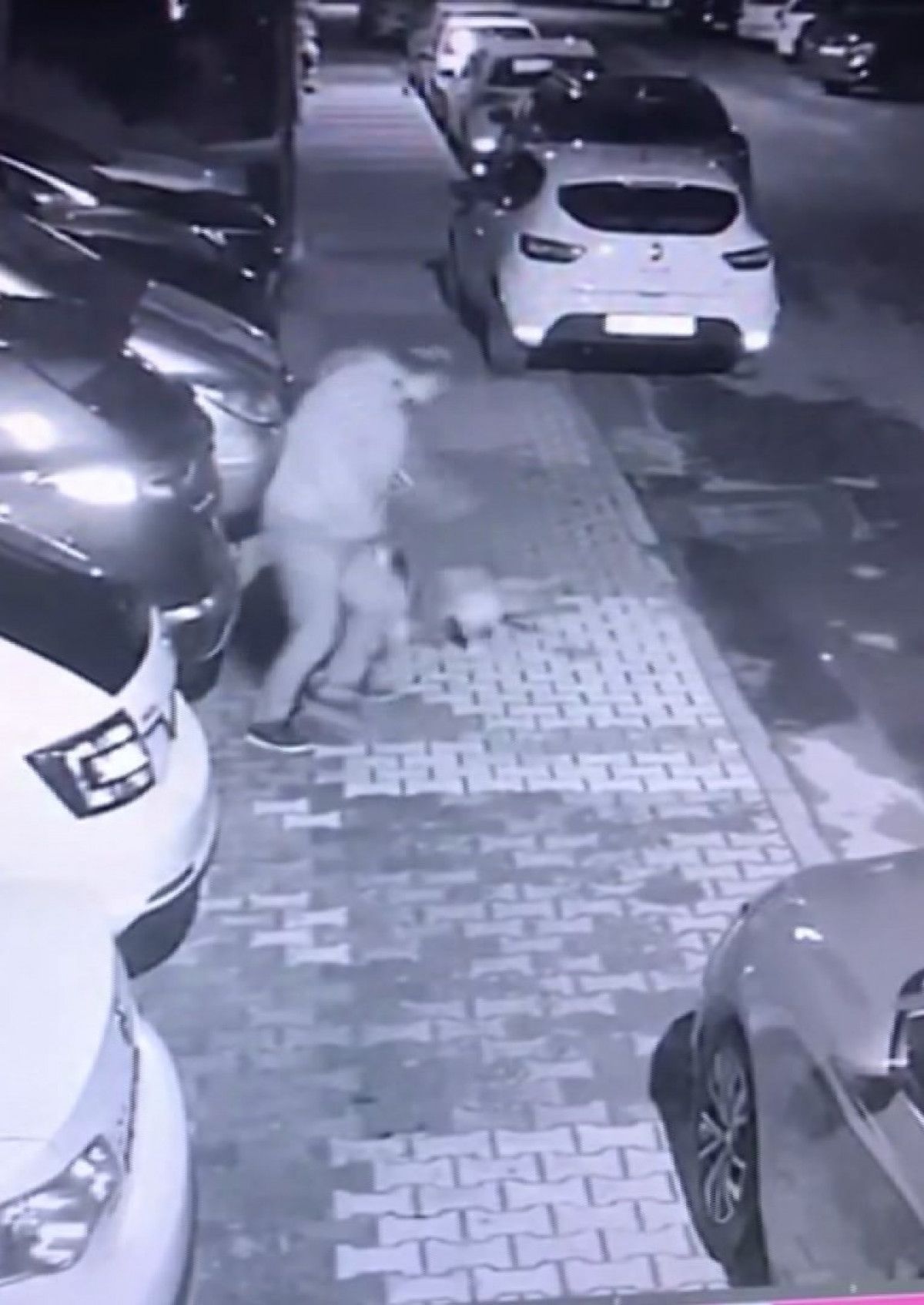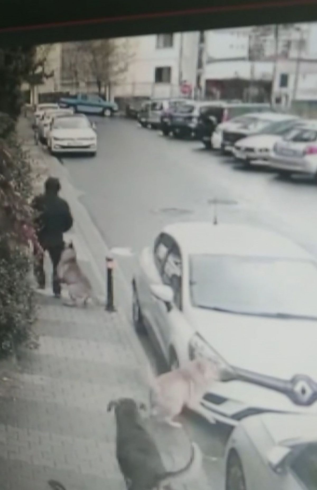 Sokakta yürüyen mahalle sakinleri, araçların arasından çıkan sokak köpeklerinin saldırısına uğradı.