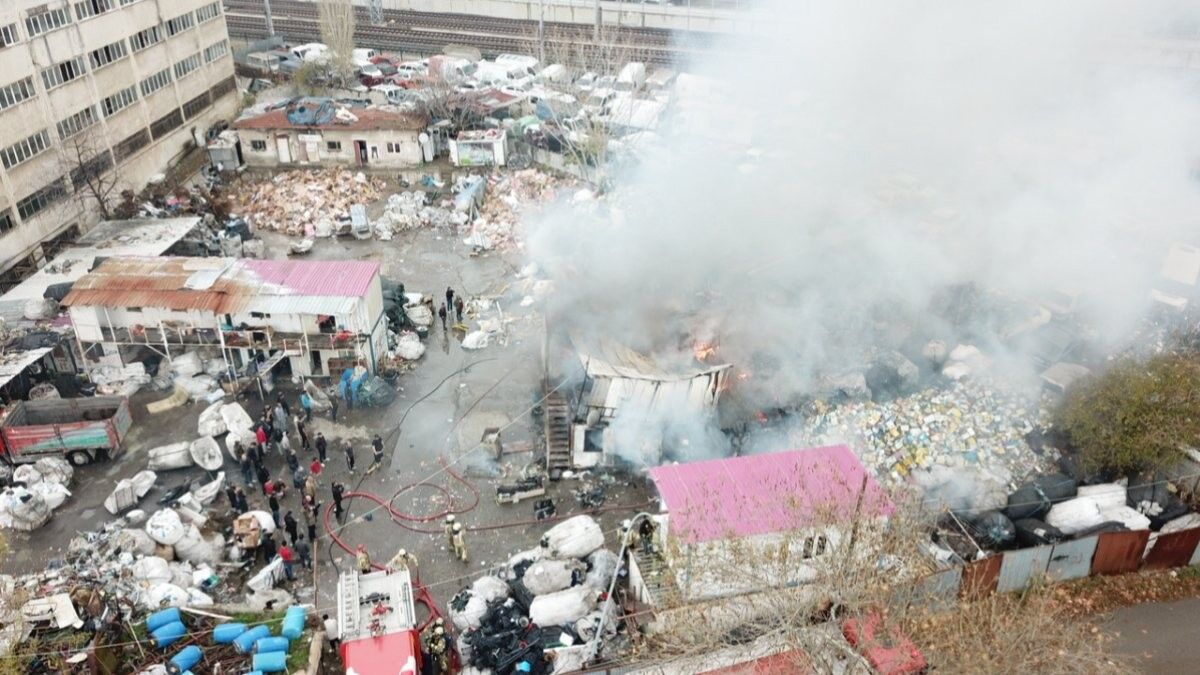 İstanbul'un Maltepe ilçesinde geri dönüşüm tesisindeki işçilerin kaldığı konteyner alevlere teslim oldu.