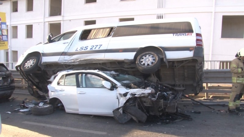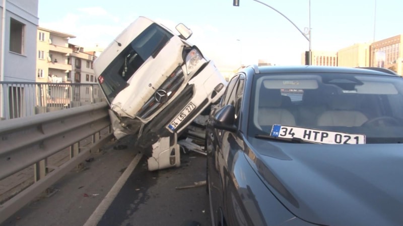 Aralarında servis minibüsünün de bulunduğu toplam 7 aracın karıştığı zincirleme kazada, çarpışmanın etkisiyle servis minibüsü bir otomobilin üzerine çıktı. Kazada araçlarda maddi hasar meydana gelirken, iki kişi yaralandı. Olay yerine hızla intikal eden sağlık ekipleri yaralıları hastaneye sevk ederken, polis de yolda güvenlik önlemleri aldı. Kaza nedeniyle trafik yoğunlaşırken, ekipler araçları kaldırmak için çalışmalara başladı.