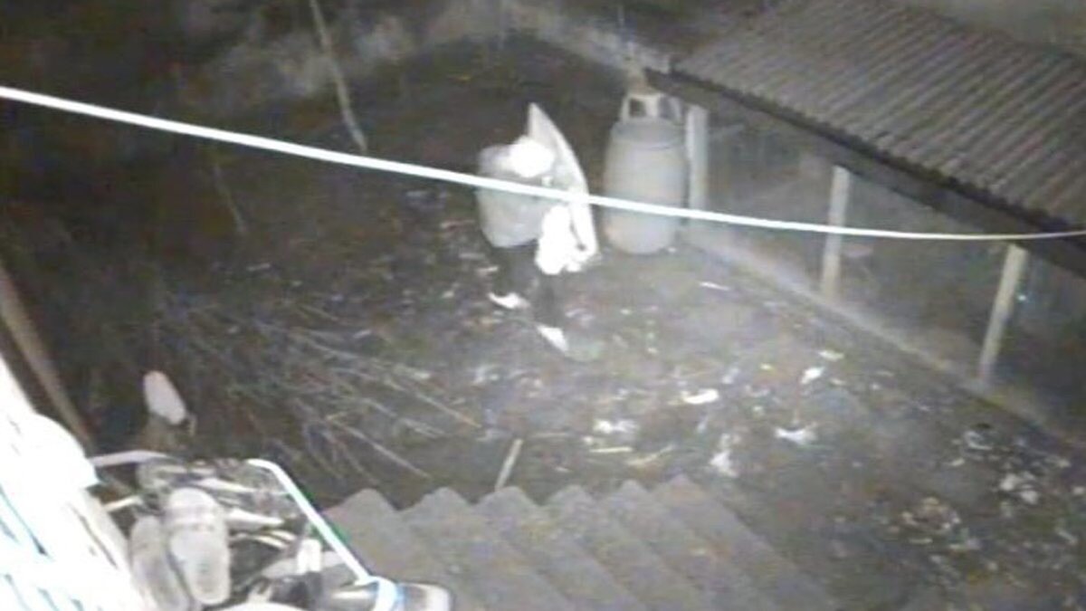 Bir şüphelinin televizyonu kucaklayarak götürmesi ve diğer şüpheliler ile birlikte kaçtığı anlar güvenlik kameraları tarafındna görüntülendi.