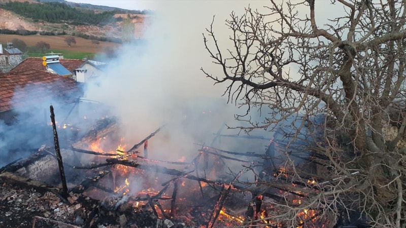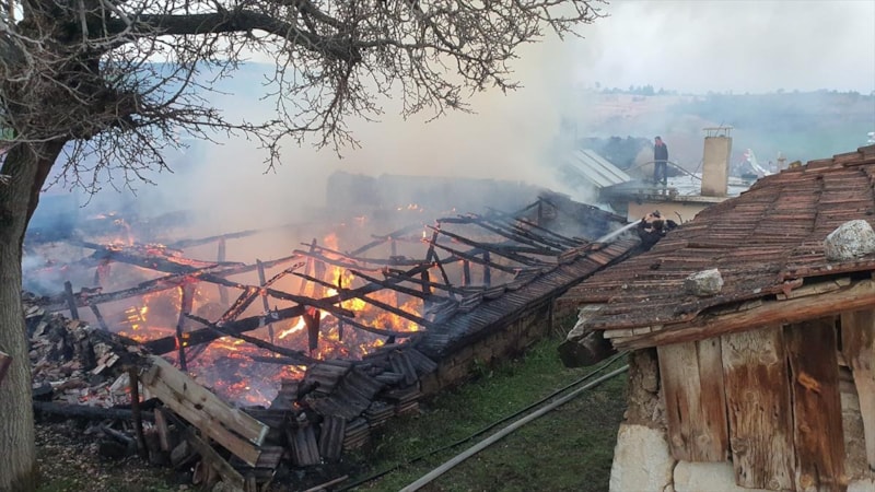 Ahırda istiflenmiş samanların tutuşmasıyla büyüyen alevler, yaşlı çiftin evi ile bitişiğinde çocukları Ali Öztin'e ait eve sıçradı.