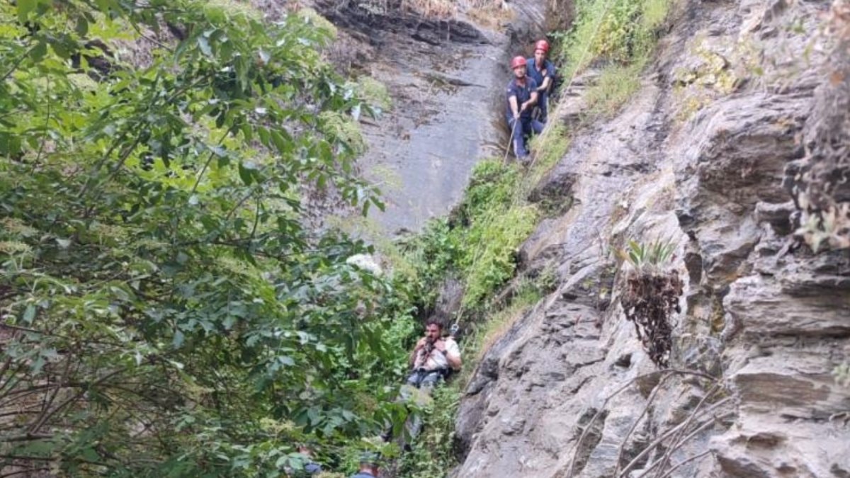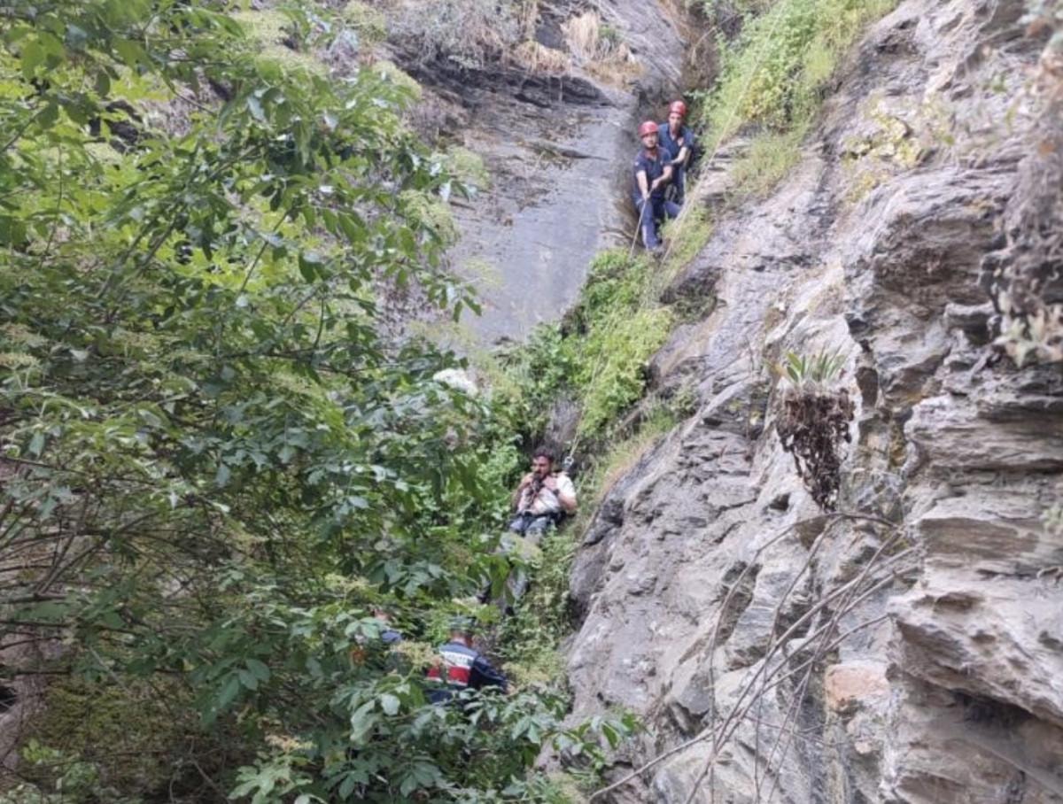 Yaklaşık 15 metre yükseklikteki uçurumdan düşen vatandaşın bulunduğu yeri tespit eden itfaiye ekipleri, kurtarma çalışması başlattı.