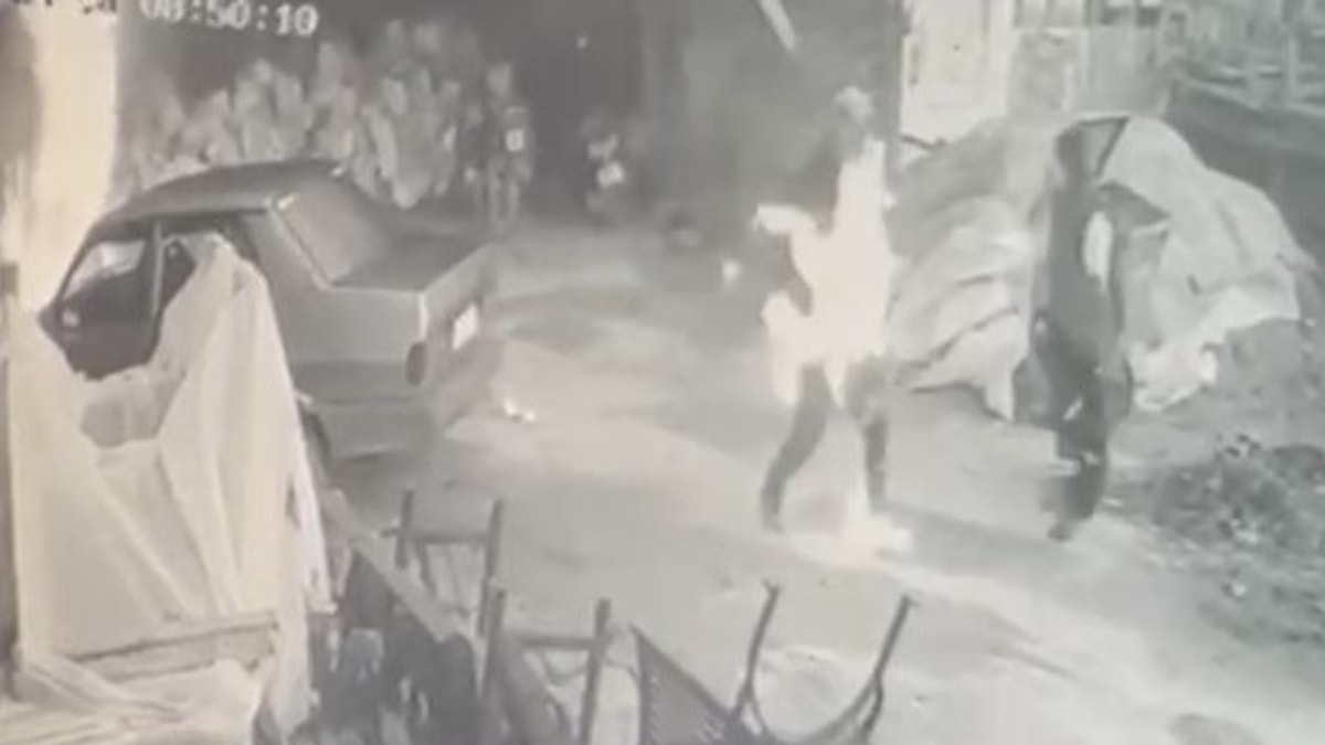 Onur Ermiş'in feci şekilde yandığı olay saniye saniye iş yerinin güvenlik kamerasına yansıdı.