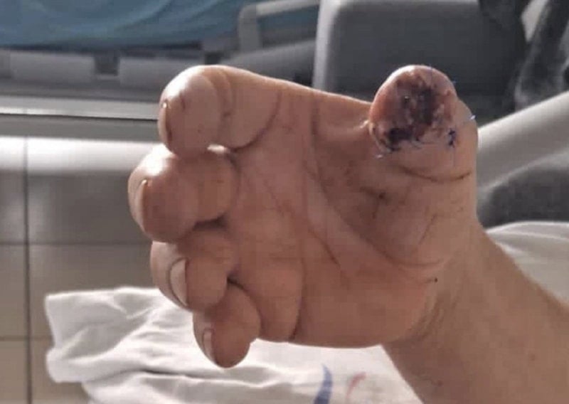 Hastanede yapılan ameliyatta, hem parmak hem de doku parçalandığı için parmak yerine dikilemedi.