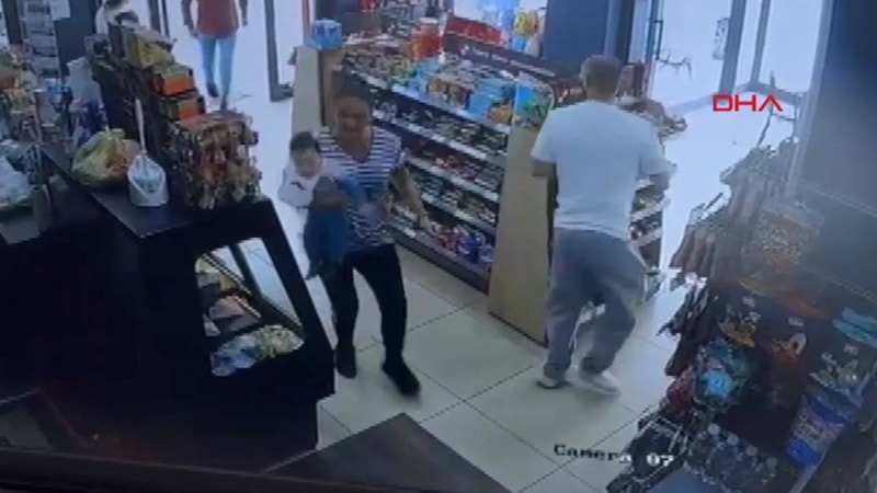 Gözü dönmüş saldırgana vatandaşların ve market çalışanlarının ürün fırlattığı, saldırganın bunun üzerine kadını bırakıp kendisine müdahale eden kişilerin peşine düştüğü görüldü.