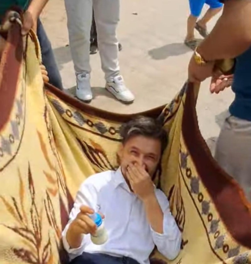 Mahalle halkı ve davetliler, bu renkli görüntüleri ilgiyle izlerken, damat ise hayatının en özel gününde, arkadaşlarının sürprizleriyle hem eğlendi hem de zor anlar yaşadı.