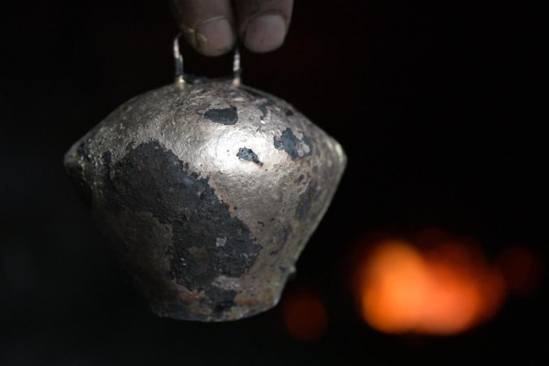 Çan yapım sürecini de anlatan Sabancı, “Hazırladığımız çamurun içine sarı pirinç atıyoruz. Kömür ocağında 400 dereceyi bulan ısıyla çanın tavını veriyoruz. Daha sonra suya batırılan çan altın sarısı rengini alıyor. Soğuduktan sonra ses ayarı ve dili yerleştiriliyor." diye konuştu.