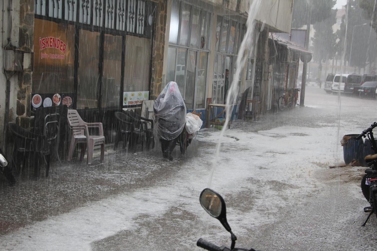 Manisa’nın Kula ilçesi, aniden bastıran şiddetli sağanakla adeta sele teslim oldu.