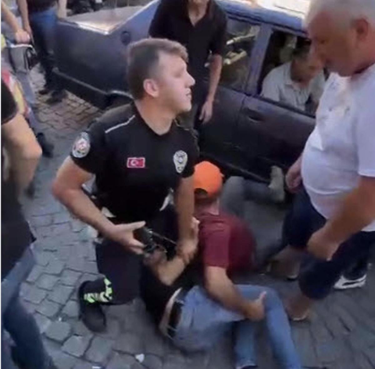 Çevredekilerden biri, müdahale etmek için yaklaştı ancak Yılmaz Akman'ın 'Bırak lan' diye bağırması ile geri çekildi.