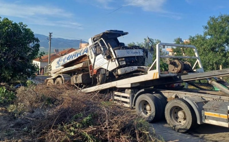Manisa'da freni patlayan vidanjörün devrildiği kazada sürücü yaralandı. Yol üzerindeki evlere çarpmamak için direksiyonu kırarak iş makinesini deviren sürücü, muhtemel faciayı engelledi.