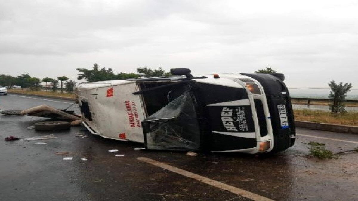Manisa’nın Salihli ilçesinden Ahmetli yönüne giden ve mevsimlik tarım işçilerini taşıyan İsmail Olca, kullandığı 45 J 7763 plakalı minibüsle aynı yöne giden Ahmet Adamol yönetimindeki 45 P 3236 plakalı otomobili sollamak isterken, yağmurla kayganlaşan yolda direksiyon kontrolünü kaybetti.