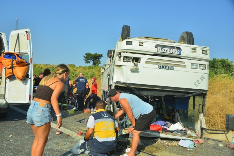 Manisa'da İstanbul-İzmir Otoyolu'nun Soma-Savaştepe bölümünde Furkan Y. yönetimindeki otomobil, mevsimlik tarım işçilerinin taşındığı Onur G. yönetimindeki midibüse arkadan çarptı.