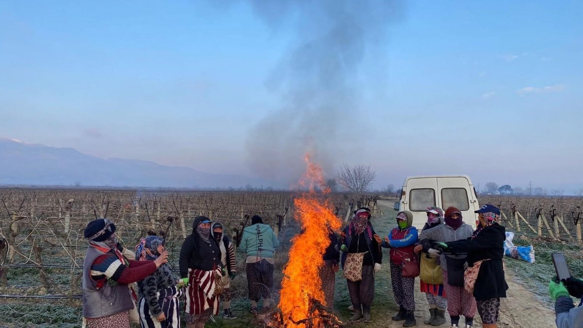 Tarım işçileri ise, "Isınmadan olmuyor, ellerimiz uyuşuyor. Isındıktan sonra çalışmaya başlıyoruz. Gerçekten sabahları ayaz çok oluyor." ifadelerini kullandı.