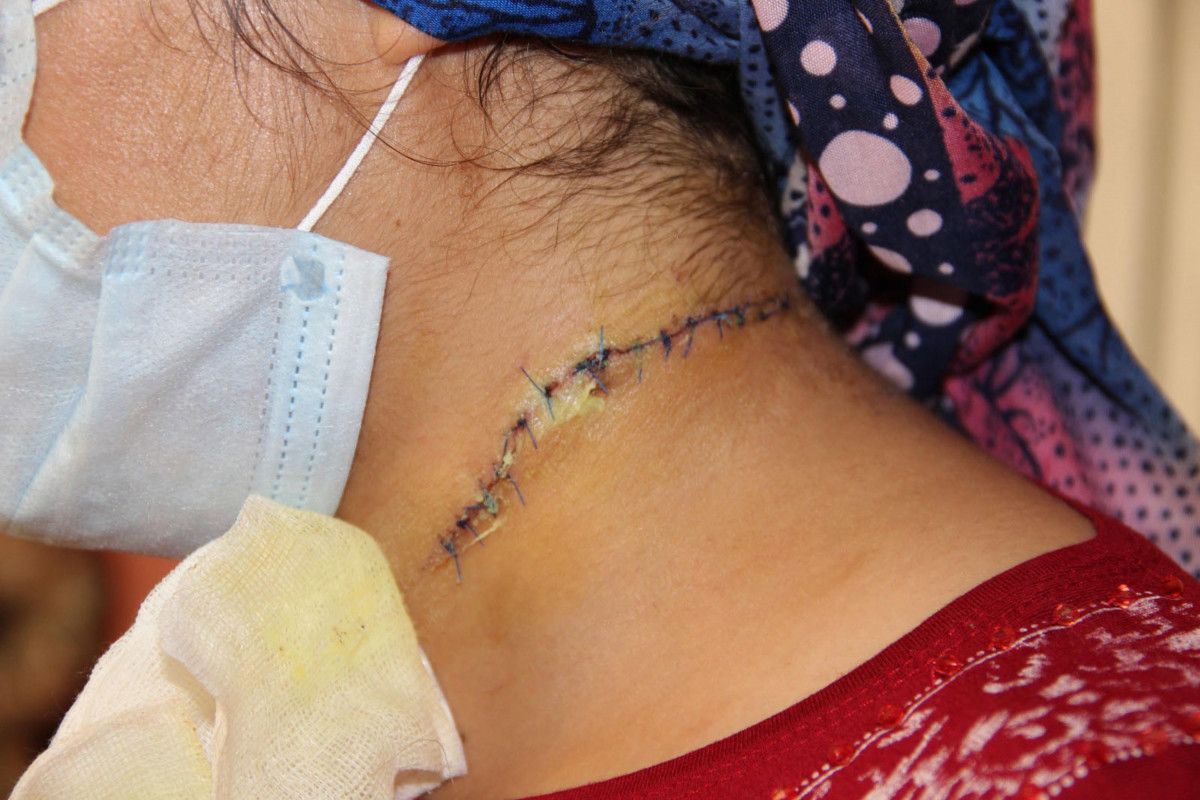 Boğazında 15 santimetrelik kesik oluşan Esra Oymak, anne ve babasının pencereden dışarı çıkartmasıyla ölümden kurtuldu.