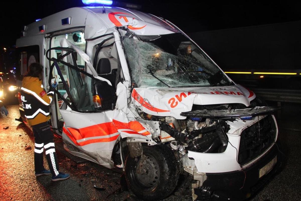 Yağışlı havanın da etkisiyle kayganlaşan yolun neden olduğu kaza sebebiyle ambulans sürücüsü Bekir Şahin (26), ambulans içerisinde bulunan acil doktoru Burak Kaan Kaşıkçı (26) ile acil tıp teknisyenleri Ayşenur Bayram (26) ve Meral Tetik (26) yaralandı.