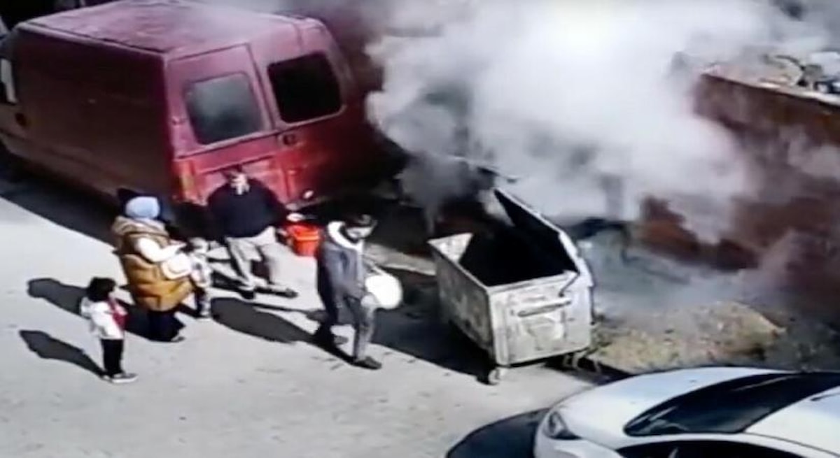 Yangının kulübelerin yanında park halinde bulunan bir kamyonete sıçraması da önlendi. Kulübelerin ateşe verildiği anlar bir apartmanın güvenlik kamerasına yansıdı.