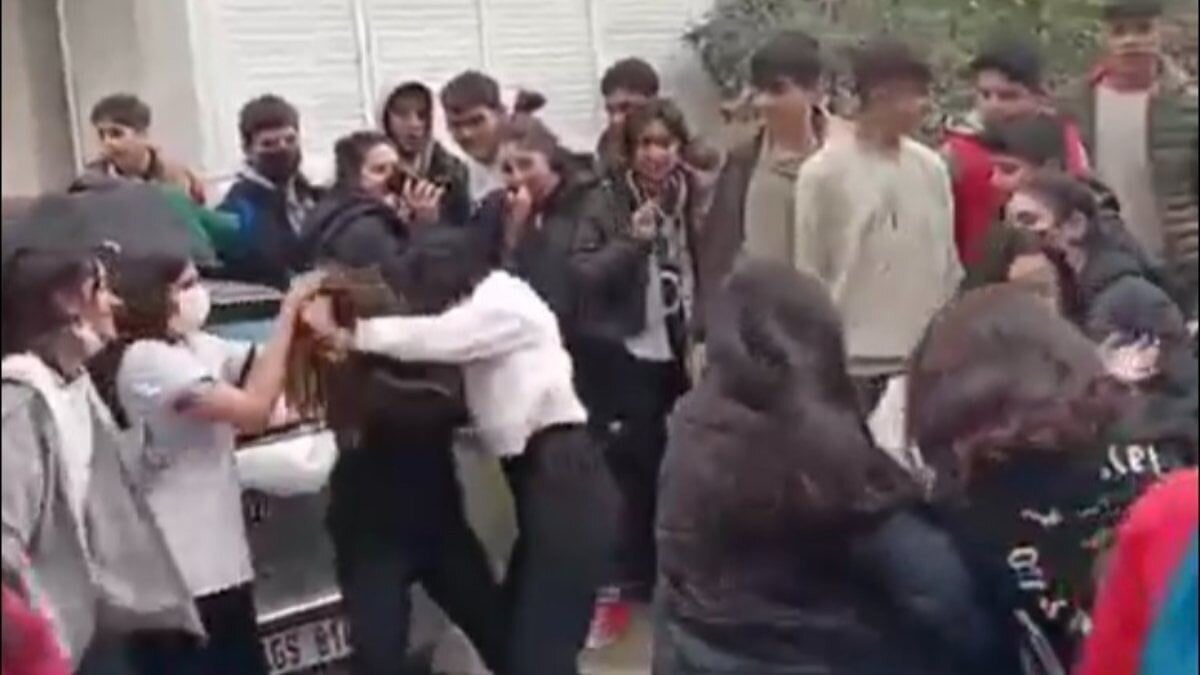 İki kız öğrenci arasında okulda başlayan gerginlik sokağa taşınca kavga yaşandı.