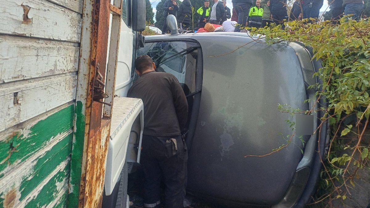 Kazayı otomobil sürücüsü yara almadan atlatırken, yolcu konumundaki eşi N.K. sıkıştı. İhbar üzerine kaza yerine sağlık, itfaiye ve polis ekipleri sevk edildi.