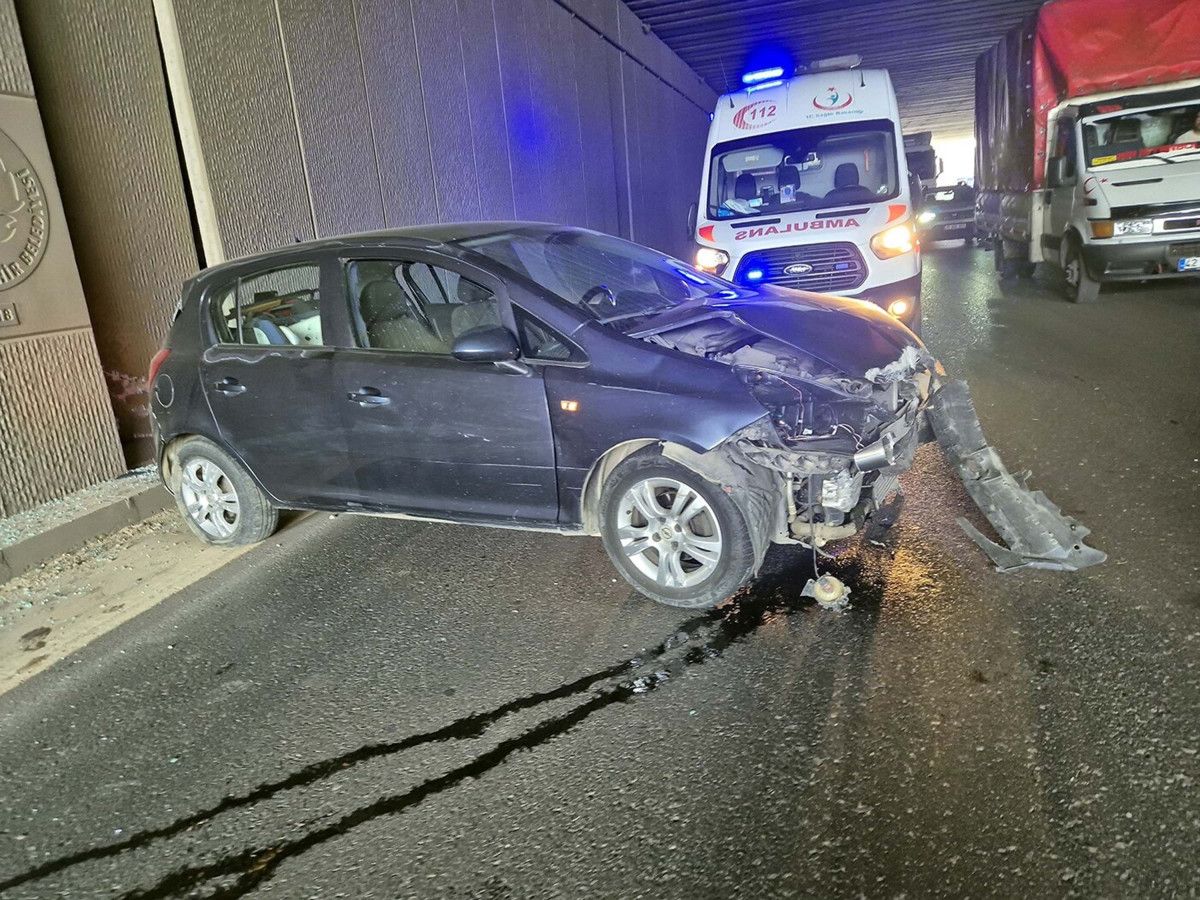 Ankara yönüne giden Elifnur Saltık Tüzün yönetimindeki otomobil, Manisa'nın Turgutlu ilçesinde lastiği patlayınca kontrolden çıkıp, girdiği tünelin duvarına çarptı.