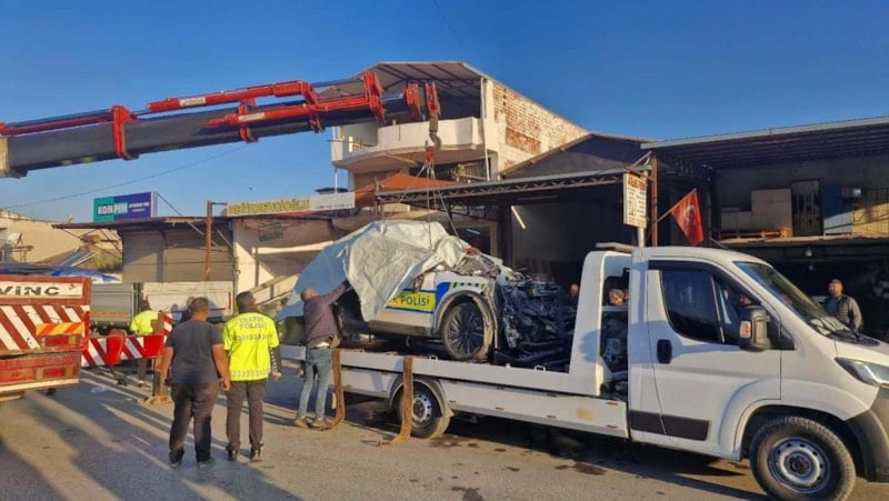 Dorsenin altına giren araçtaki polislerden Ali Barut şehit oldu, Hatice Ü. ise ağır yaralandı.