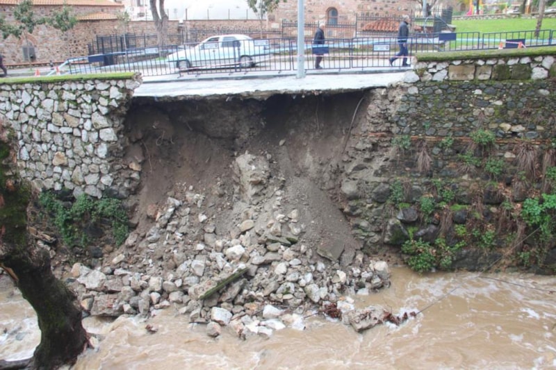 Manisa’nın Spil Dağı'ndan aldığı kaynak suyunu Gediz Nehri’ne taşıyan Çaybaşı Deresi'nin de debisinin artması nedeniyle Osmanlı döneminde yapılan dere ıslah çalışmalarına ilaveten sonradan yapılan istinat duvarlarının bir kısmı, heyelan sonucu göçtü.